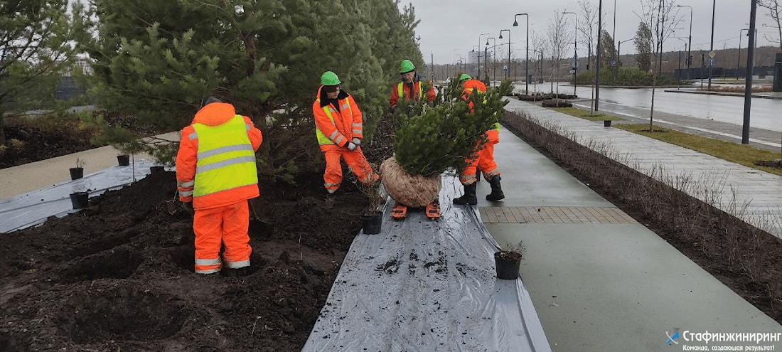 В ноябре-декабре 2024 года наша компания принимала участие в реализации масштабного проекта по озеленению территории строящегося административно-жилого комплекса Сбер Сити.